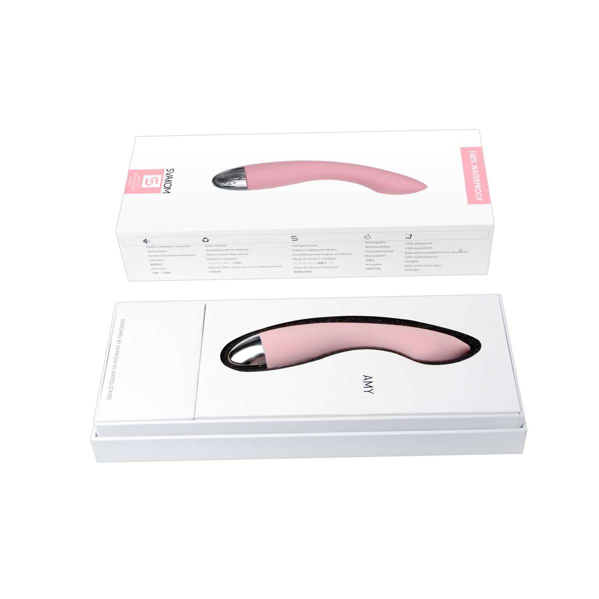 Der Amy Pale Pink ist ein ergonomisch geformter G-Punkt-Vibrator mit Soft Touch Textur. Mit 5 flüsterleisen Vibrationsmodi, jeder mit 5 verschiedenen Intensitäten. Der zusätzliche SVAKOM Intelligent Mode imitiert die Vibrationsfrequenzen des echten Geschlechtsverkehrs. Sie werden intensiver, wenn Sie sich dem Orgasmus nähern. Kann einfach per Knopfdruck gesteuert werden.