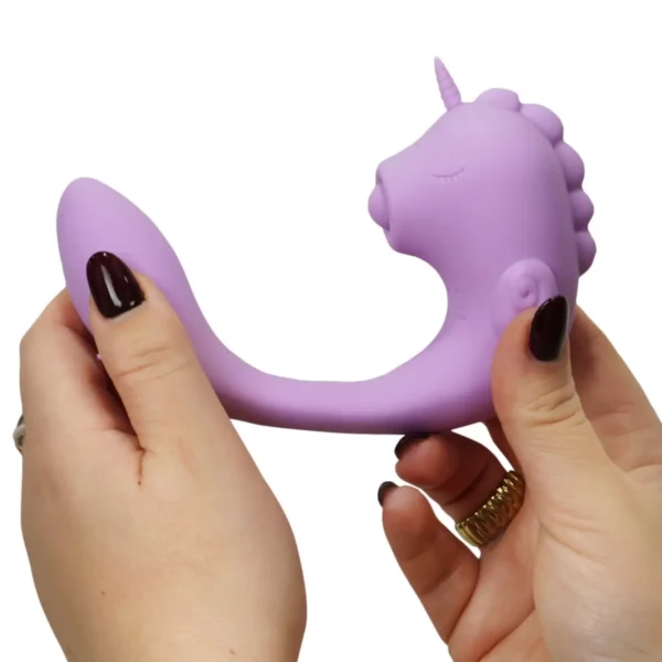 Il magico e flessibile vibratore doppio C-Horse Marina Lilac di Unihorn ha un design da piccolo cavalluccio marino unicorno. Il giocattolo in silicone morbido e flessibile offre un piacere sia interno che esterno. Le vibrazioni versatili stimolano la vagina e soprattutto il punto G.